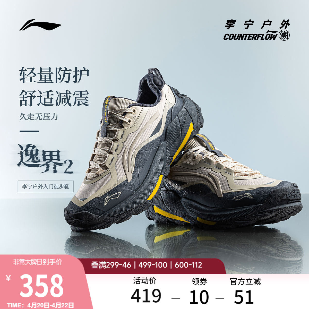 李宁户外CF溯|逸界2徒步鞋男女鞋减震轻便回弹防滑耐磨运动鞋
