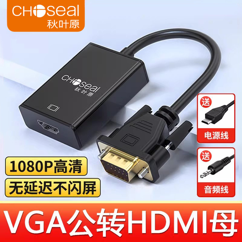 秋叶原VGA转HDMI转换器 高清转接线带音频电脑投影仪转接头QS8188