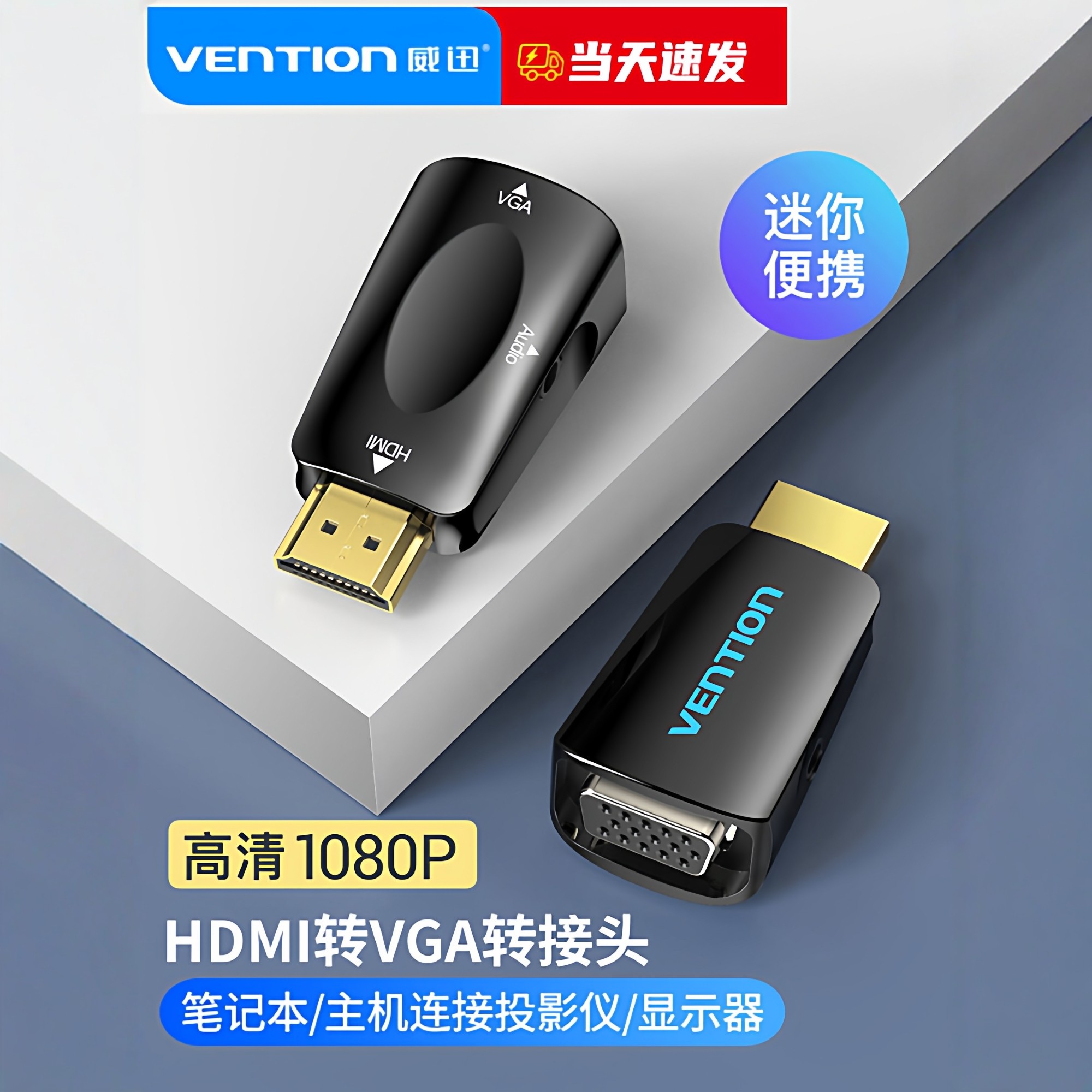 威迅hdmi转vja转接头vga线转换器带音频迷你mini电脑笔记本显示器