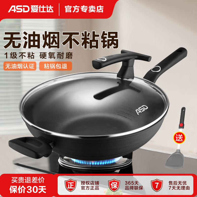 爱仕达炒锅不粘锅无油烟平底锅家用电磁炉炒菜锅专用锅煤气灶适用