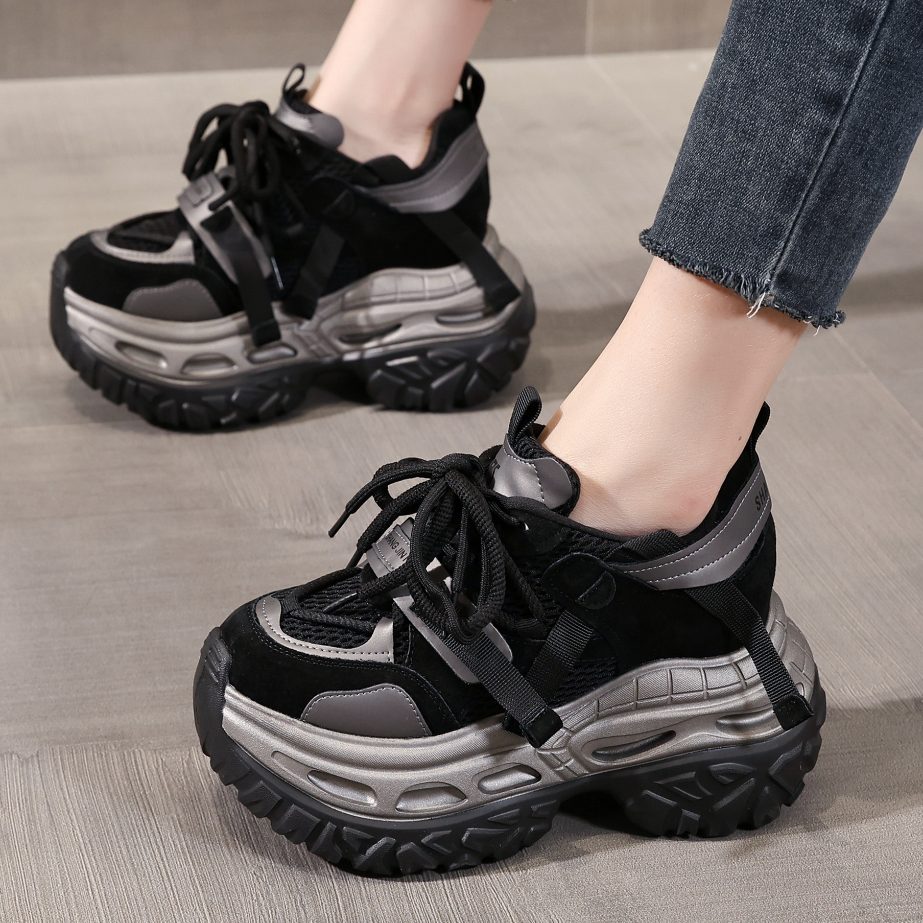 ZFCQ香港厚底内增高老爹鞋女款网面2025秋冬超高跟9cm小个子休闲