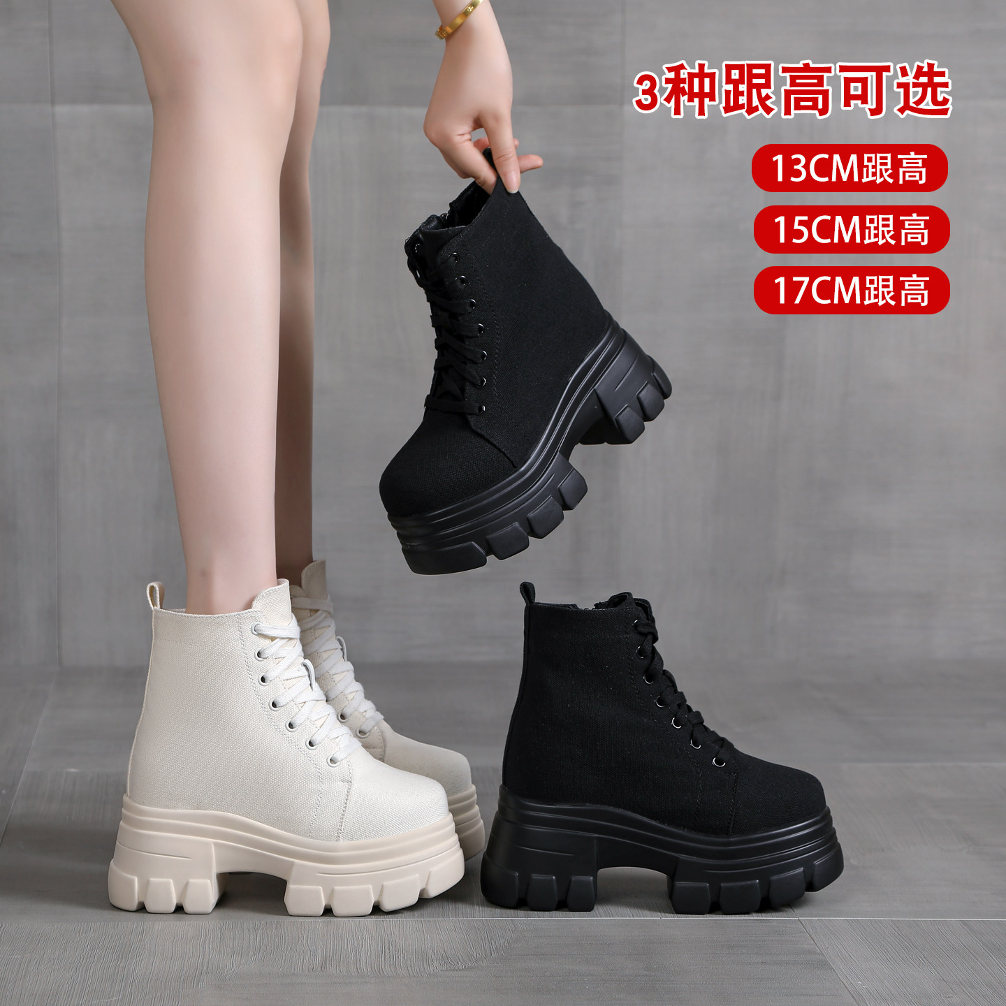 2025秋冬女士高帮帆布鞋隐形内增高小个子12公分超高跟厚底松糕鞋