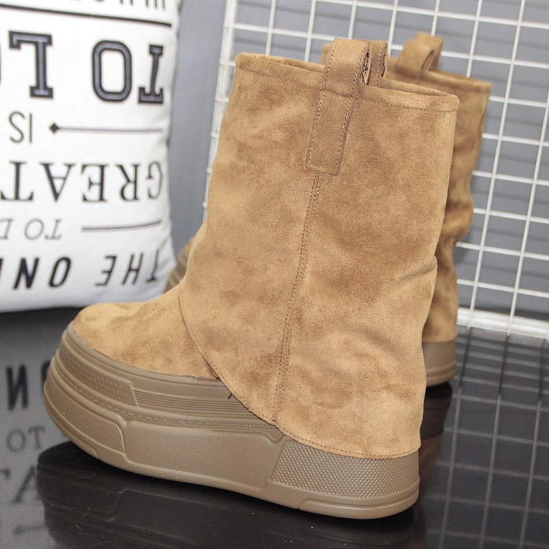 厚底高帮鞋内增高12CM超高跟小个子休闲绒面松糕棉鞋女瘦瘦女短靴
