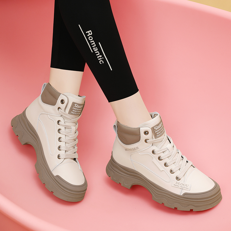 真皮短靴女2025秋冬季新款高帮小白鞋软底休闲运动旅游女鞋马丁靴