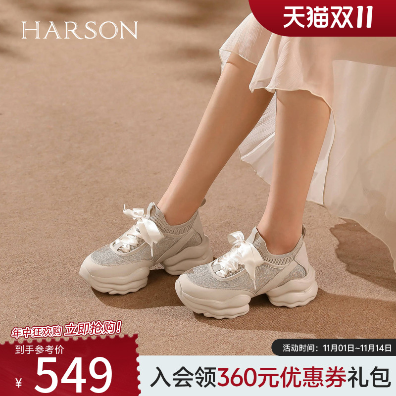 哈森水钻网面老爹鞋厚底显高休闲运动旅游女鞋2025秋HCL251603