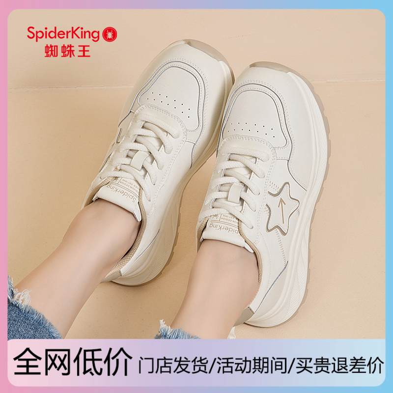 蜘蛛王真皮软底运动鞋女2025年新款春秋季旅游女鞋休闲厚底小白鞋
