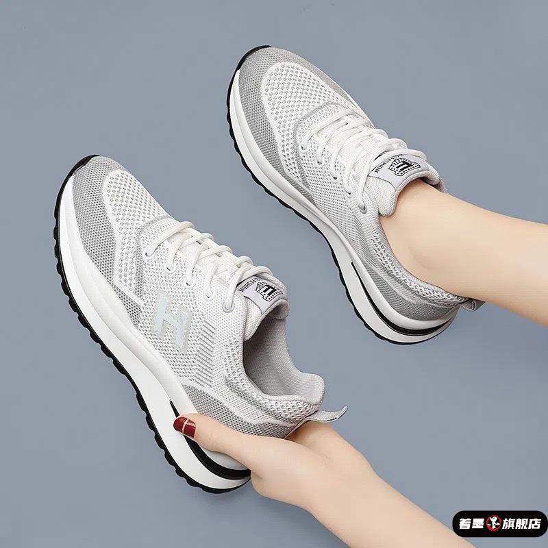 2025新款夏季透气网面鞋女显瘦显高5CM学生休闲运动户外旅游女鞋