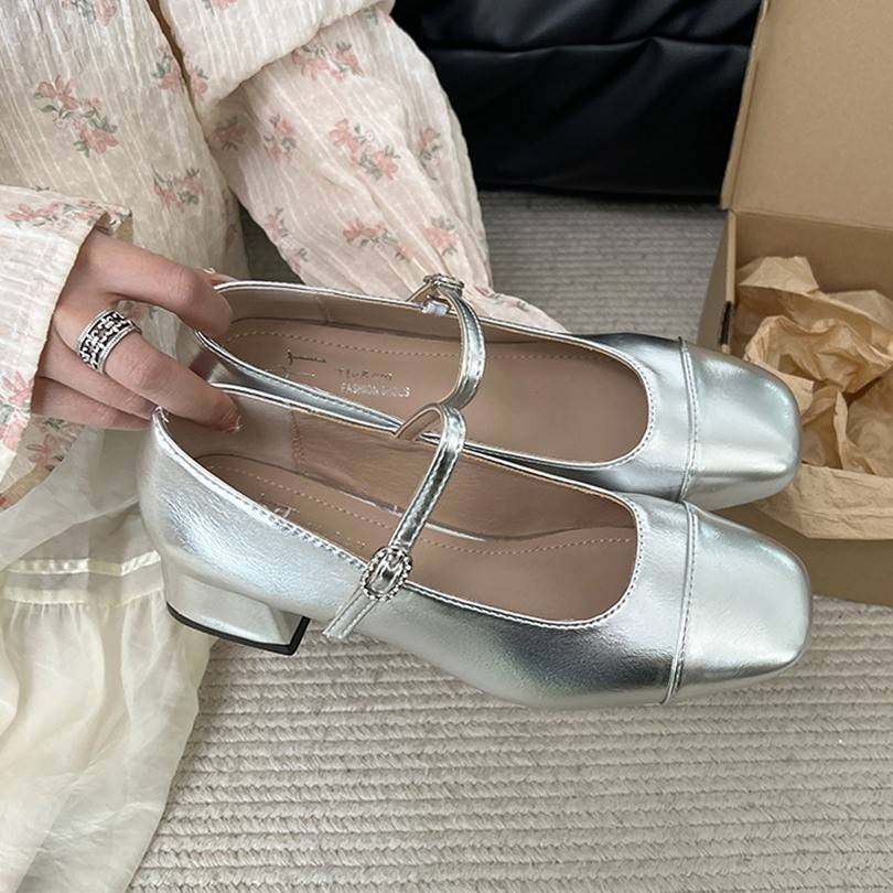 玛丽珍高跟鞋女2025春秋新款粗跟单鞋仙女风小个子法式复古小皮鞋