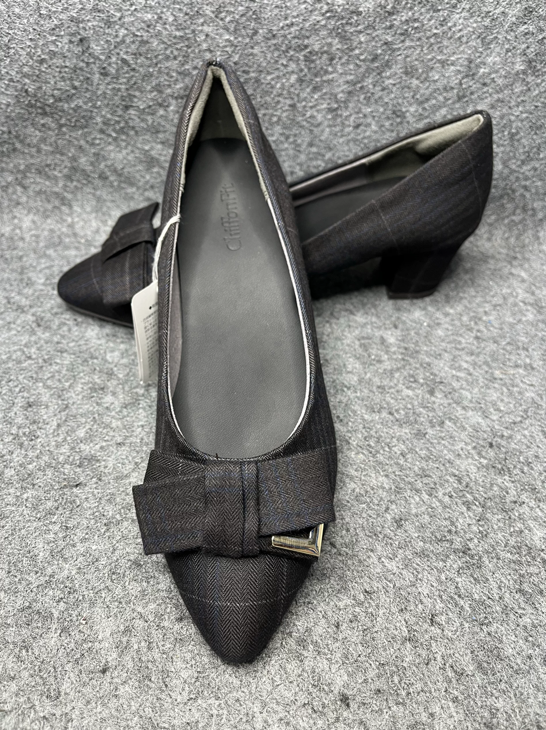 方头粗跟单鞋女2026春季新款拼色小香见蝴蝶结浅口小个子超高跟鞋