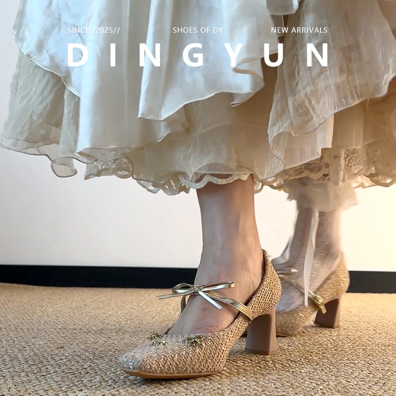 【丁允】气质编织蝴蝶结玛丽珍鞋温柔小香一字带粗跟浅口单鞋2026