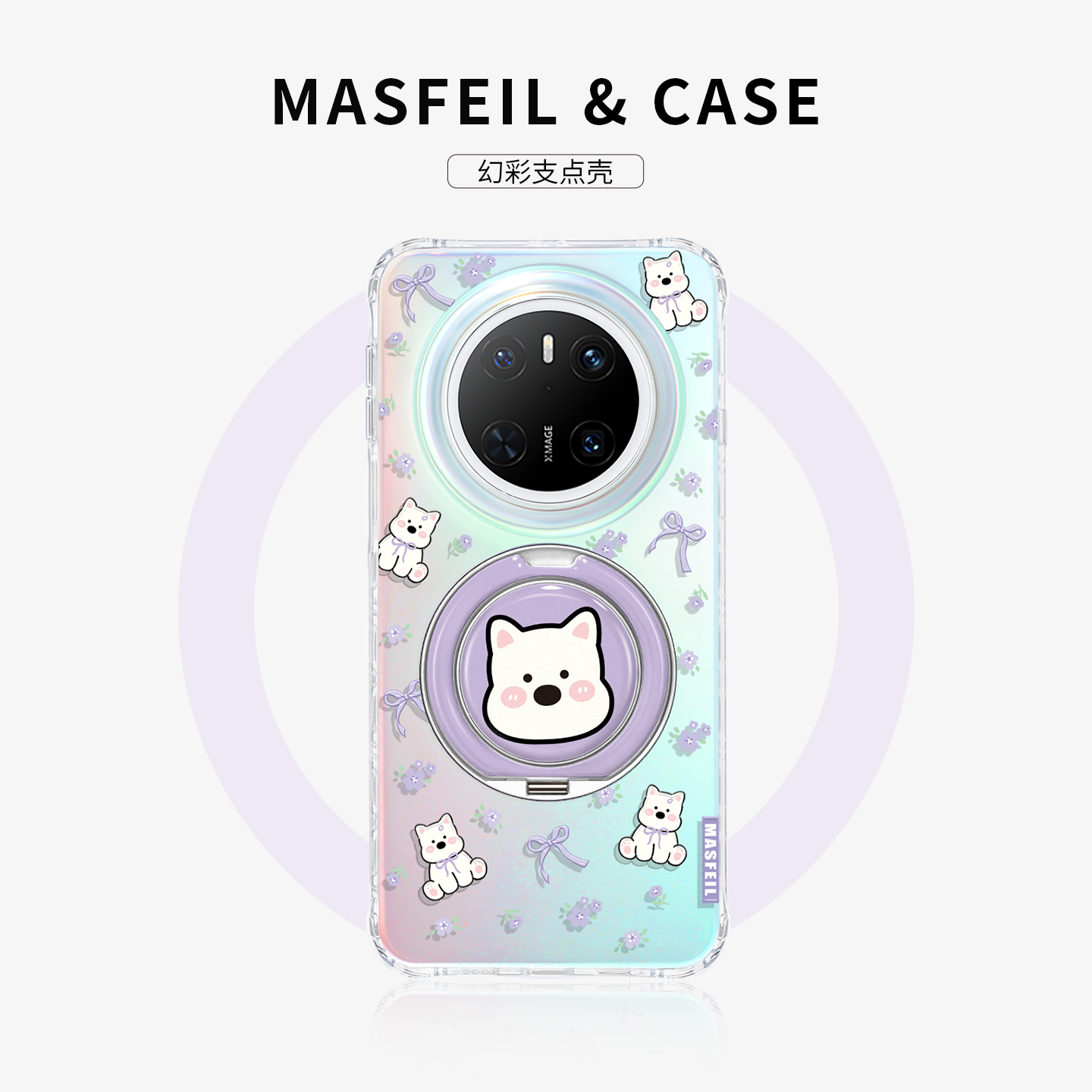 ZHIZHE×紫色西高地适用华为Mate60Pro手机壳带支架新款mt70por+支点套网红超薄Lo9高级感mete可爱女全包