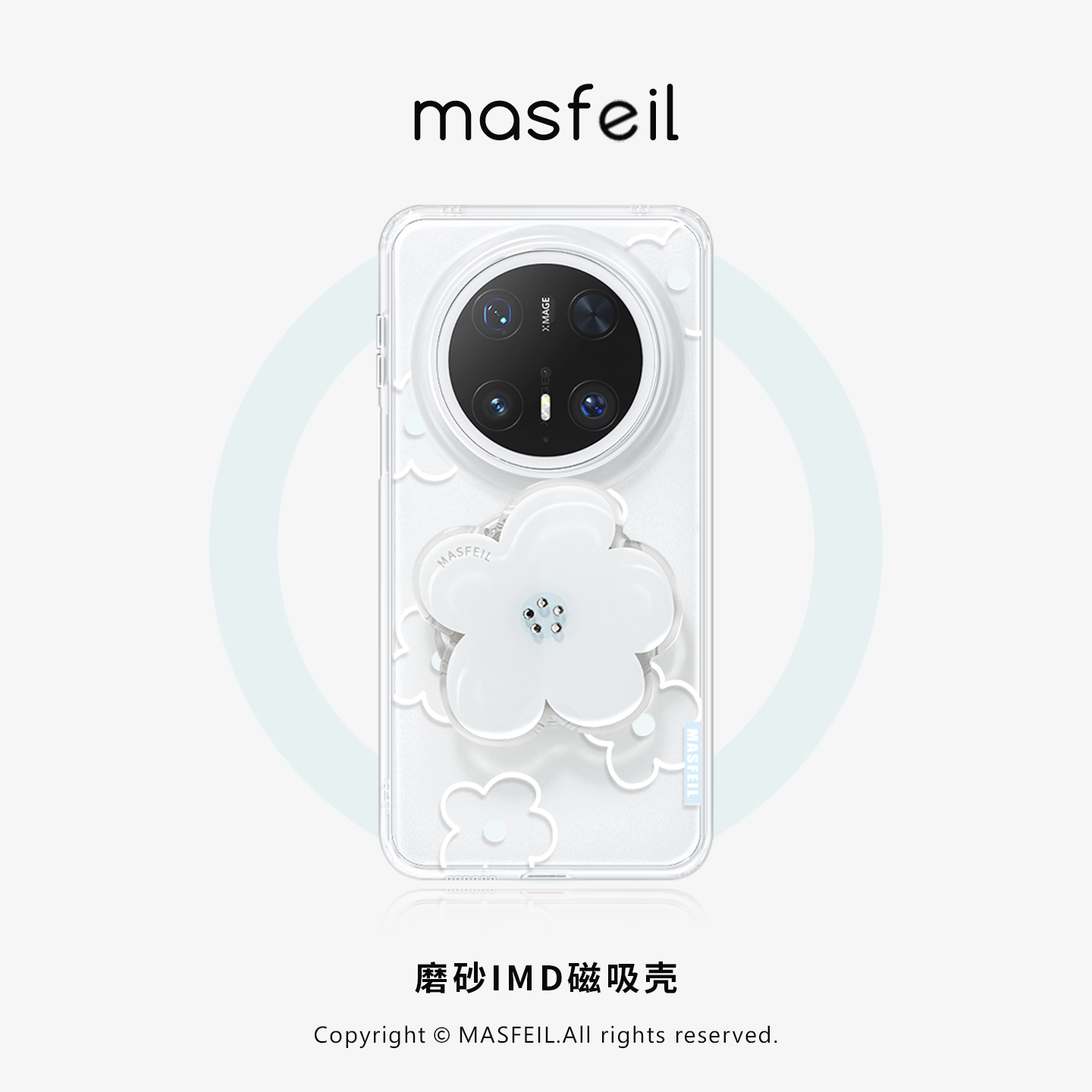 ZHIZHE×白色小花适用华为Mate80Pro手机壳新款Ro9磁吸带支架mate60保护套高级感女por+简约的超薄mete