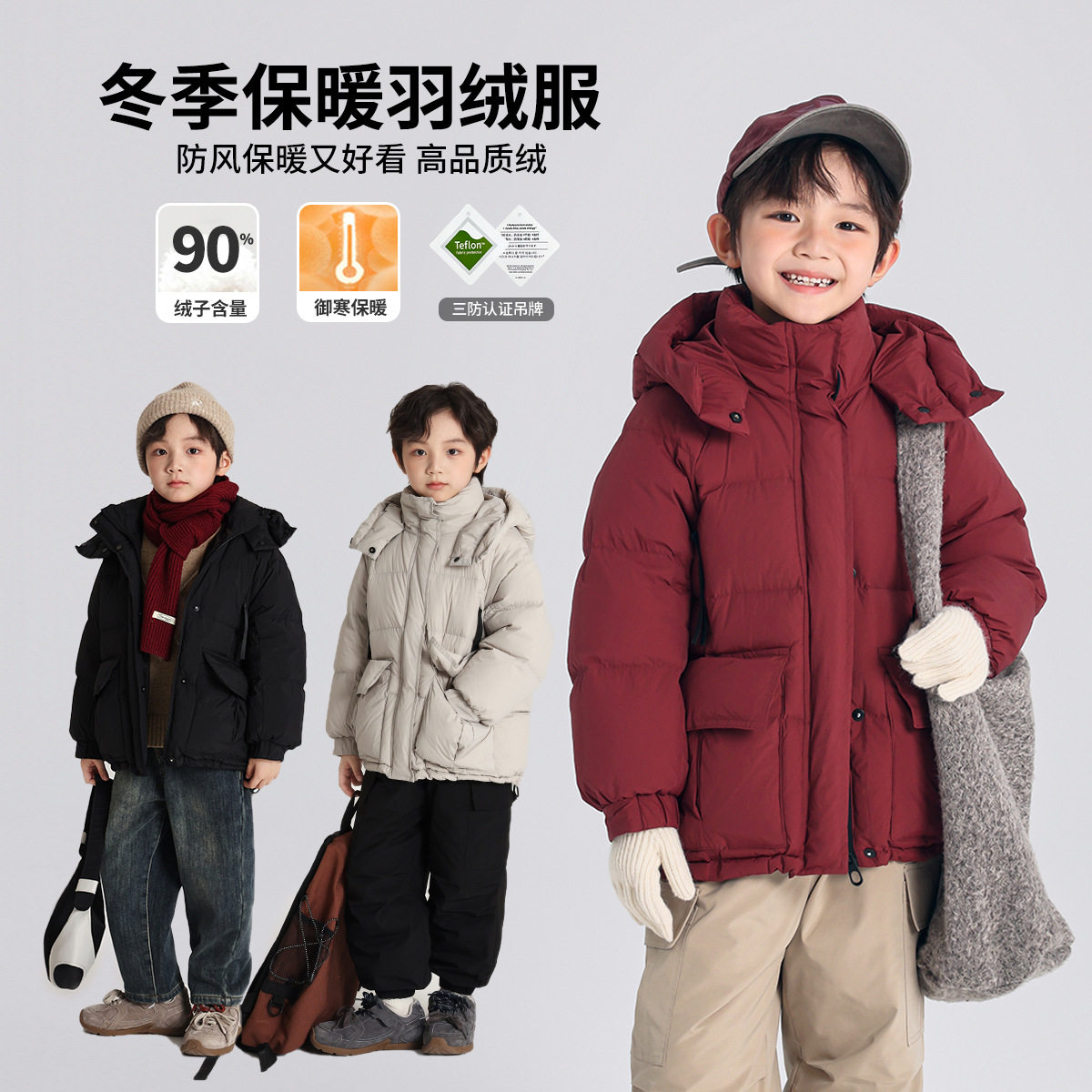 小象汉姆男童男童防水防污羽绒服2025冬装新款男童加厚鸭绒面包服