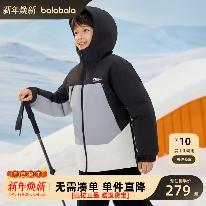 【商场同款】巴拉巴拉童装男童羽绒服冬装儿童外套拼色连帽户外风