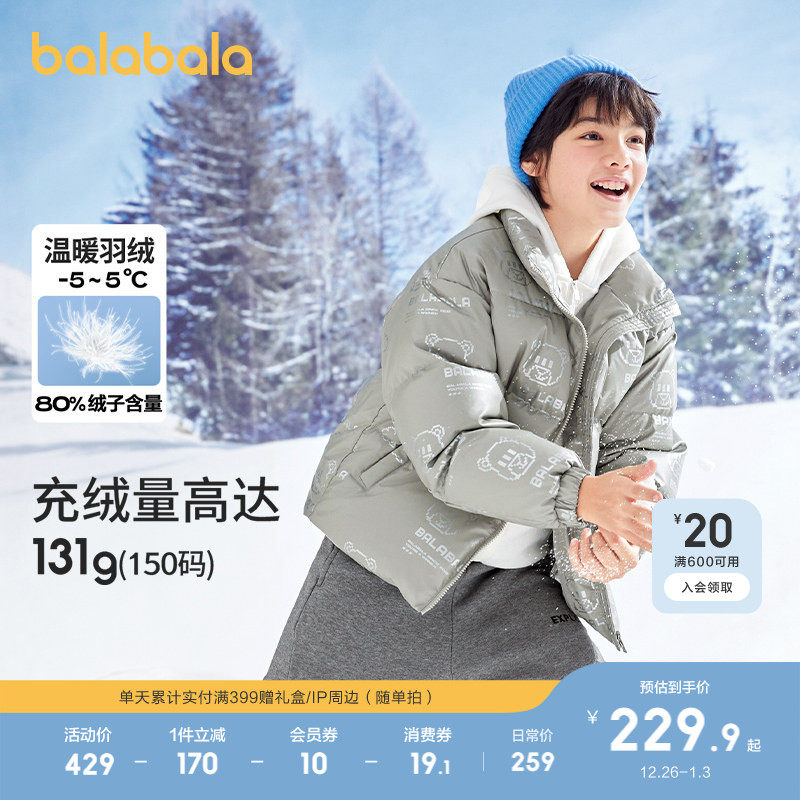 巴拉巴拉童装冬装羽绒服男童女童中大童加厚保暖外套潮流上衣潮流