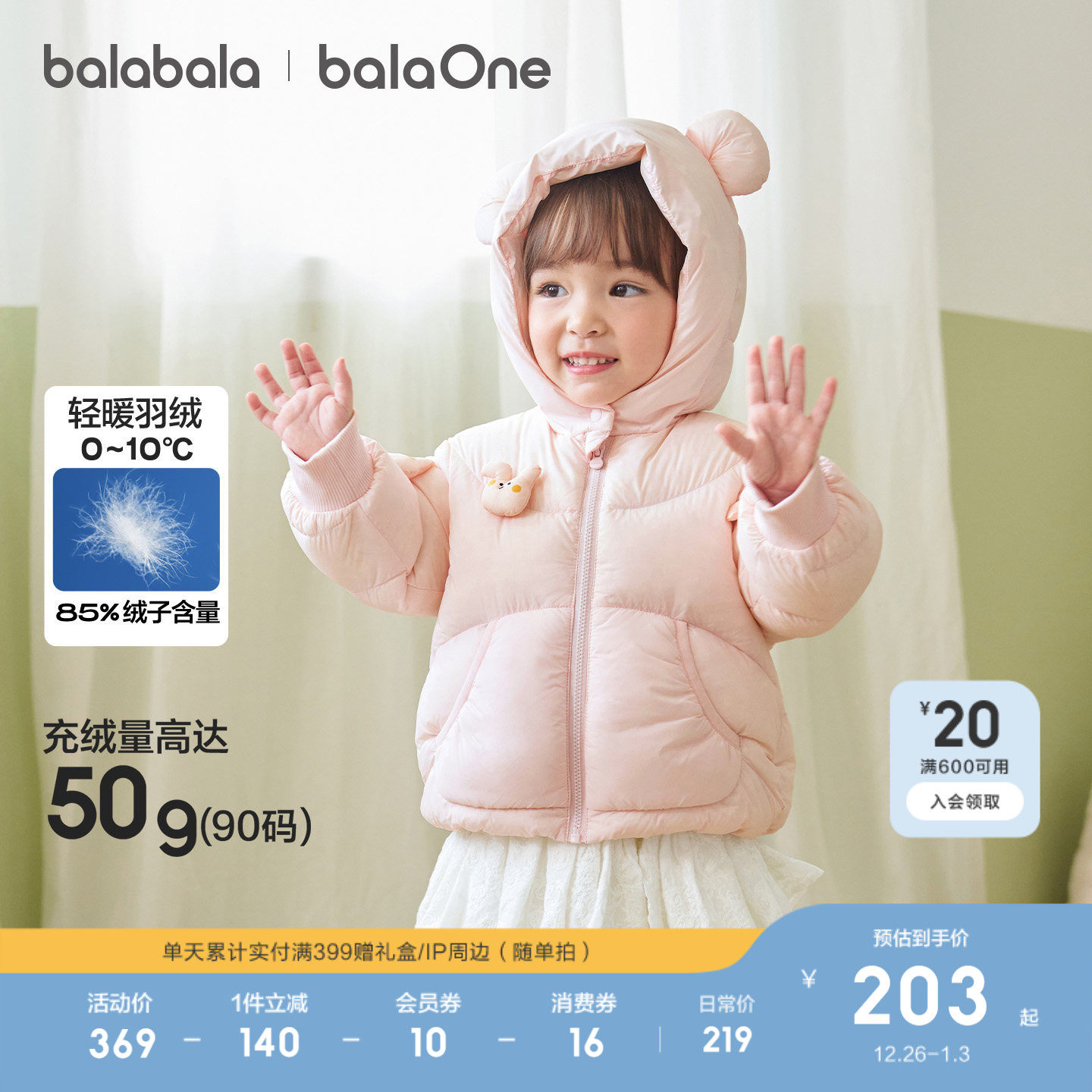 巴拉巴拉balaOne宝宝羽绒服三防男童冬装女童连帽外套萌2025新款
