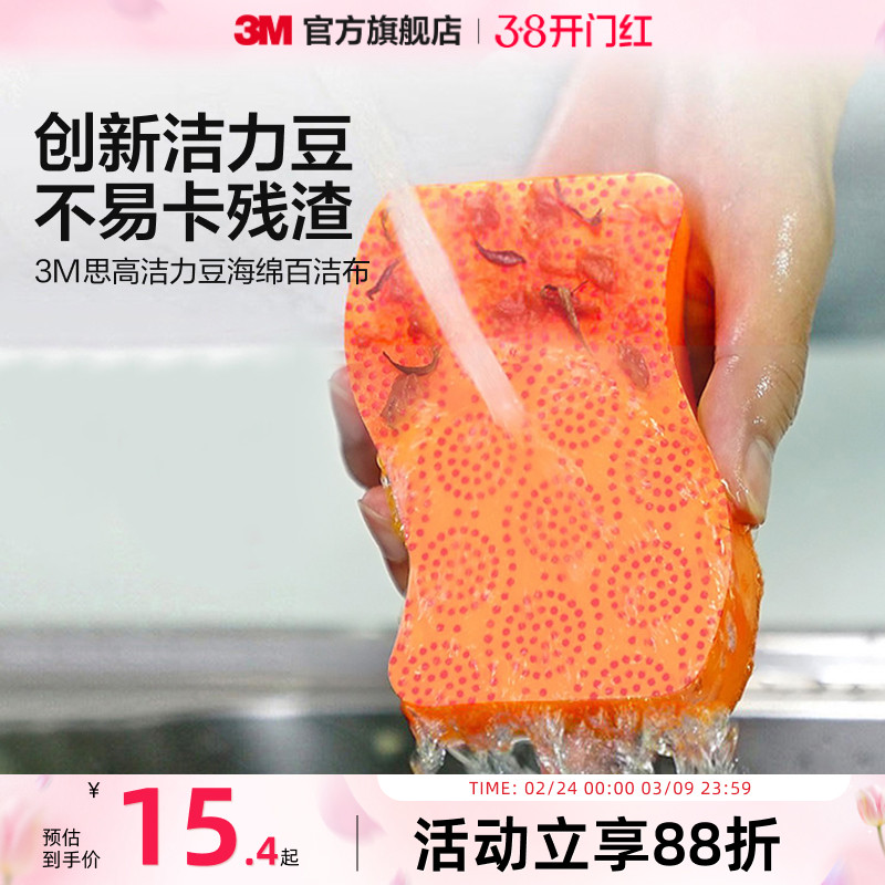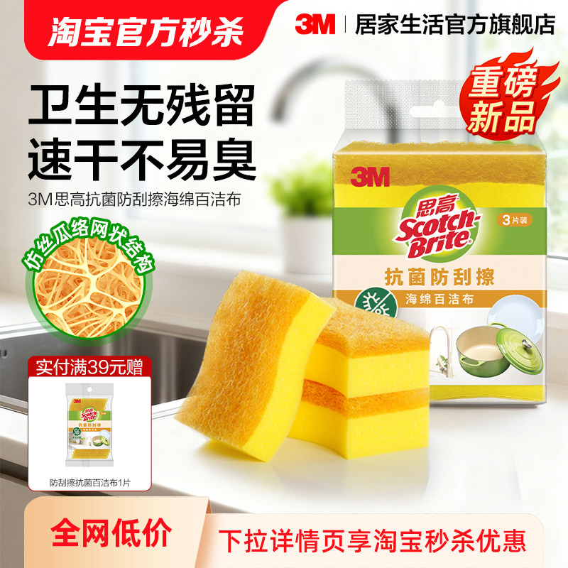 3M思高海绵百洁布去油污厨房清洁刷碗神器抹布洗碗不粘锅菜丝瓜络