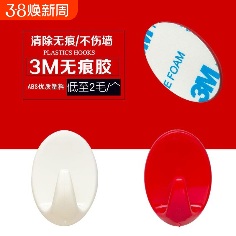 家用粘钩3M粘胶无痕钉挂钩强力承重中国结福字白色红色喜庆无痕胶