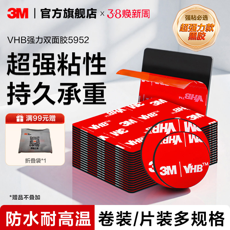 3M强力双面胶VHB粘墙胶带胶片摆件粘贴高粘度防水etc车用强粘背胶