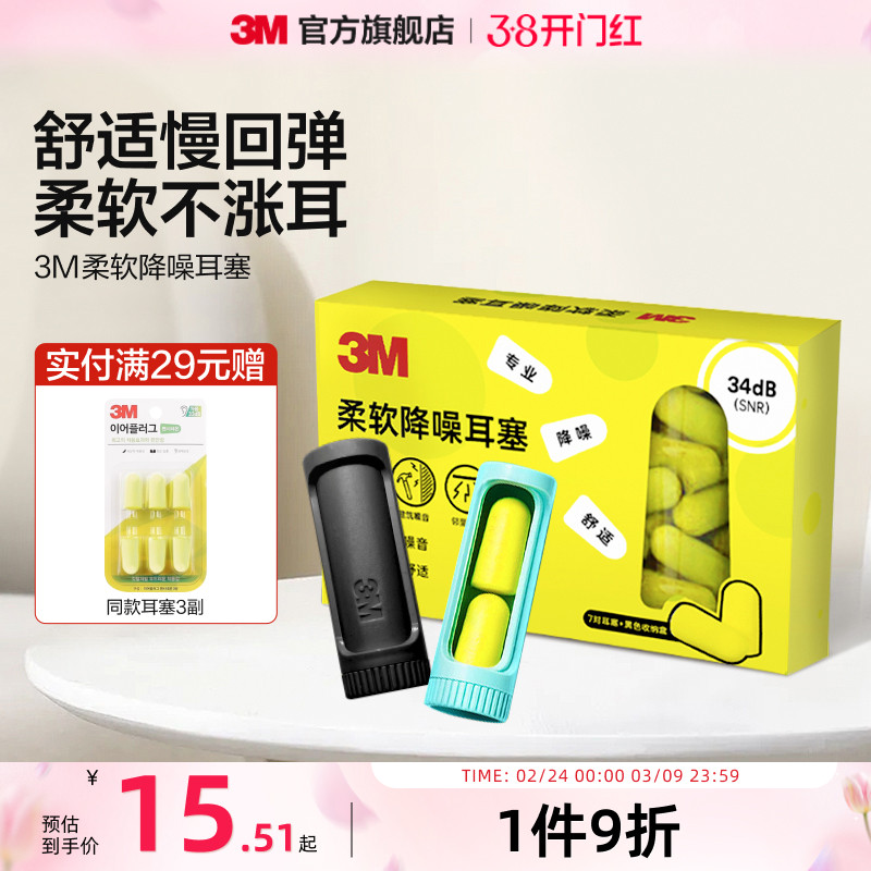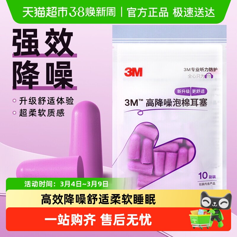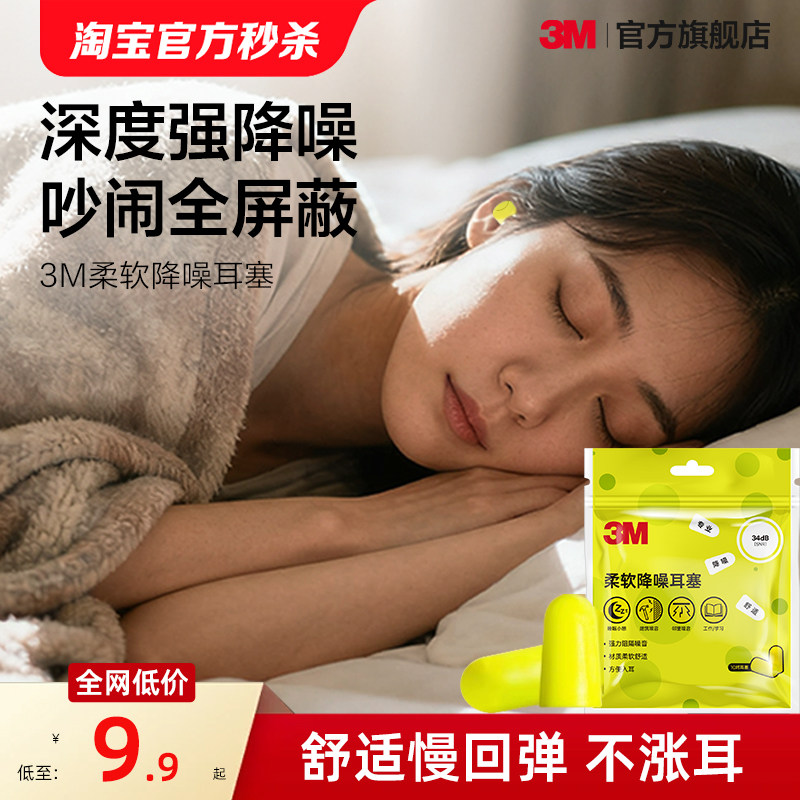 3M隔音耳塞宿舍睡觉睡眠静音舒适降噪防吵打呼噜自习学习10对/包