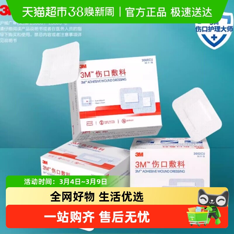 3M医用无菌自粘敷贴3662纱布贴术后伤口愈合贴大号创口贴透气敷料