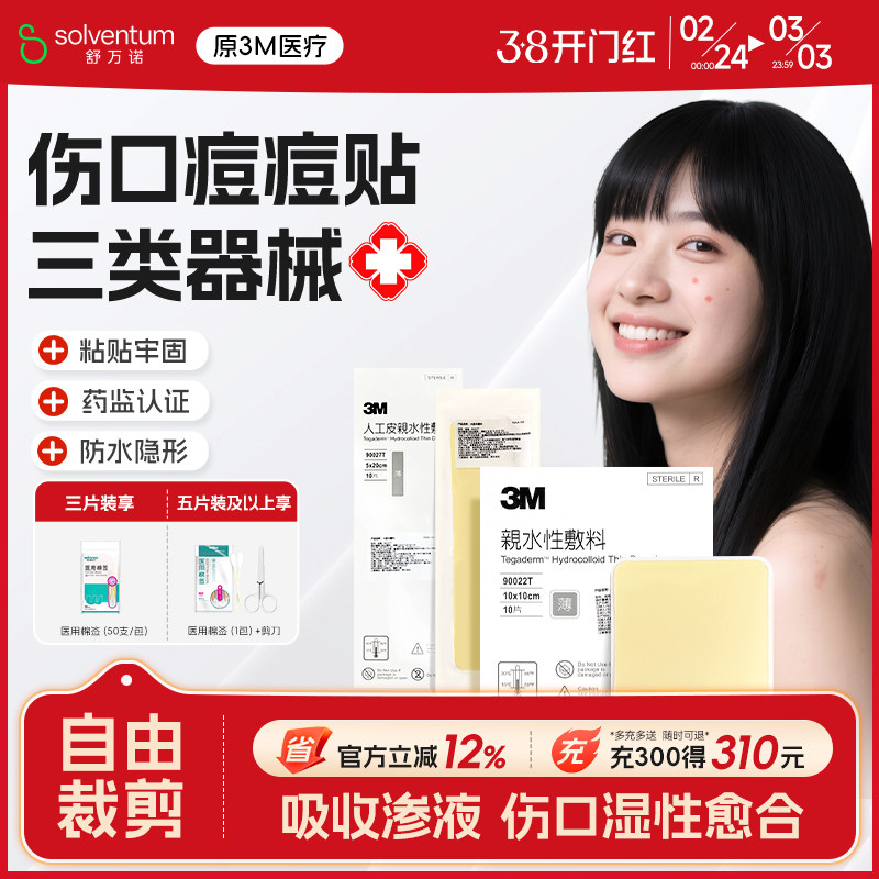 3M人工皮水胶体敷料湿性愈合点痣擦伤伤口痘痘贴防水医用无菌敷贴