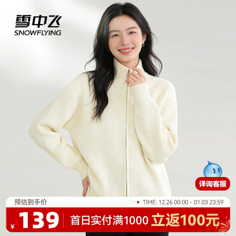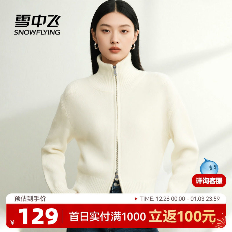 雪中飞拉链毛衣开衫女秋冬内搭可外穿25新款女士针织衫高领毛衫PC