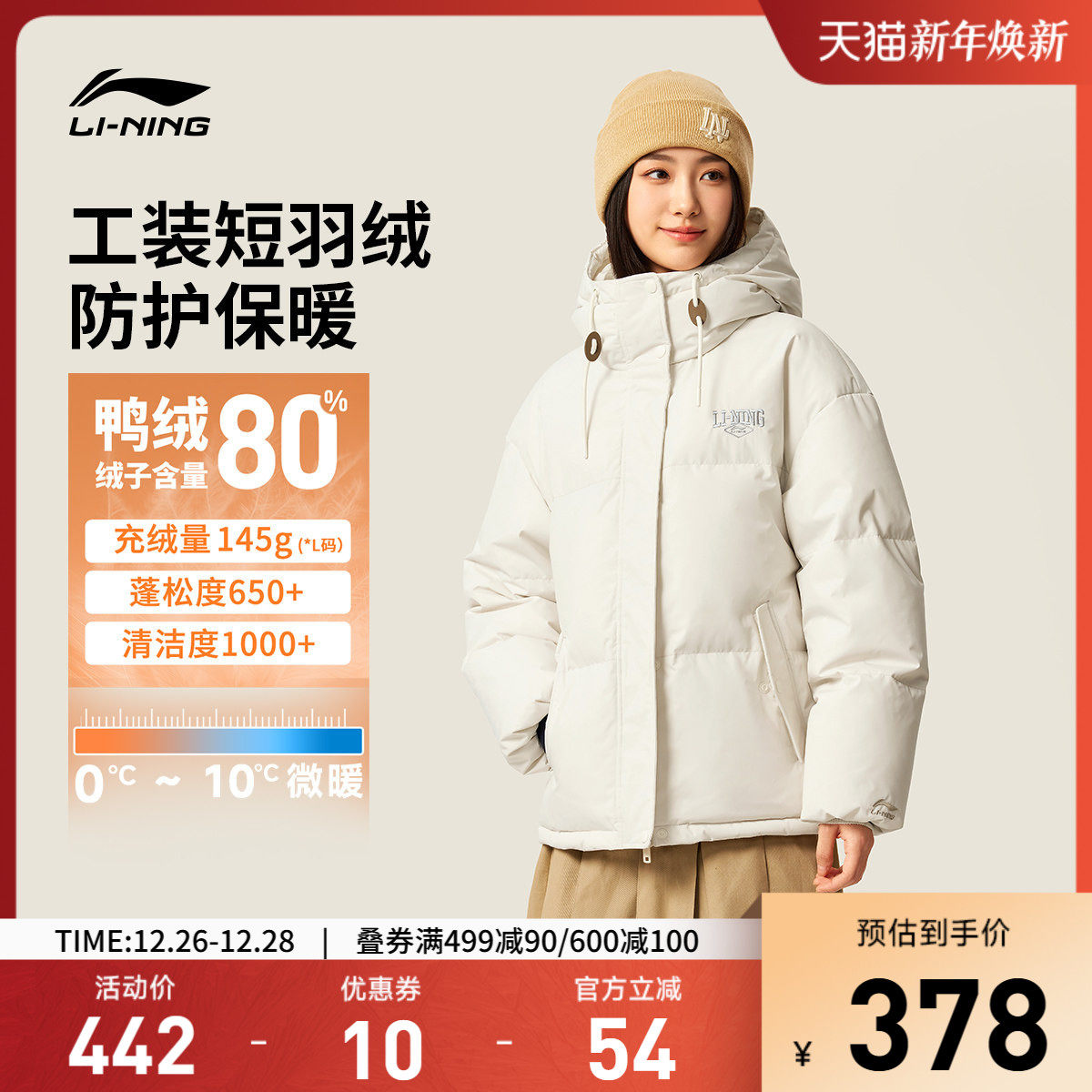 李宁短款短羽绒服女士新款连帽秋冬百搭休闲大衣运动服厚外套女款