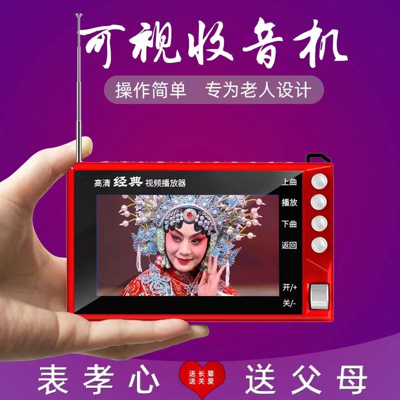 先科老年人收音机唱戏机视频播放器唱机老人看戏便携式插卡充电线