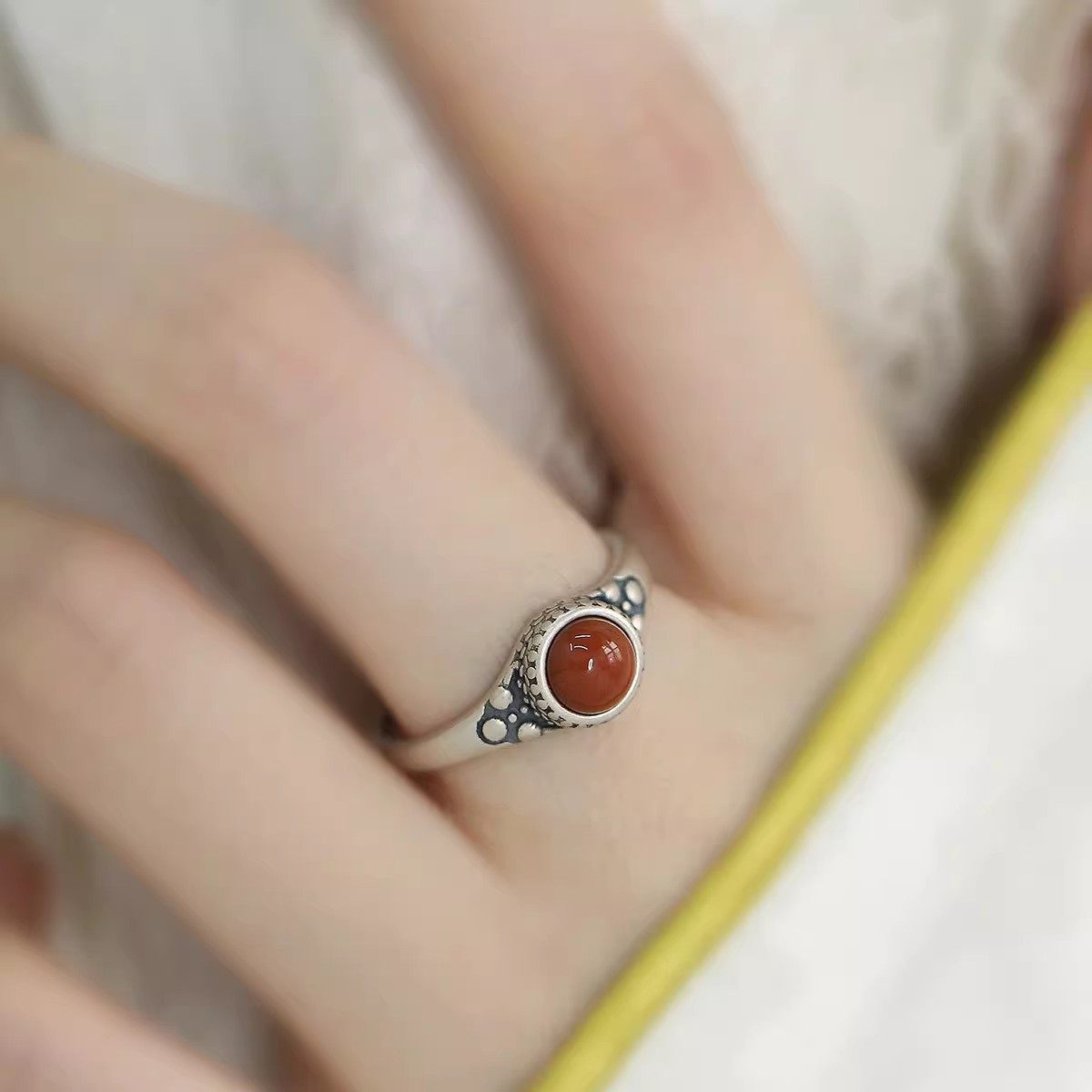 925银新中式小众蛋面南红戒指女民族风复古轻奢百搭开口食指戒