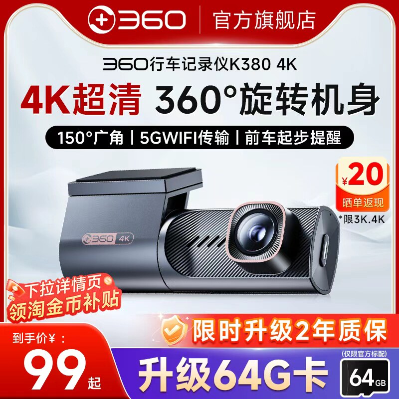 【官方旗舰】360行车记录仪2025新款免走线安装360度4K超高清K380
