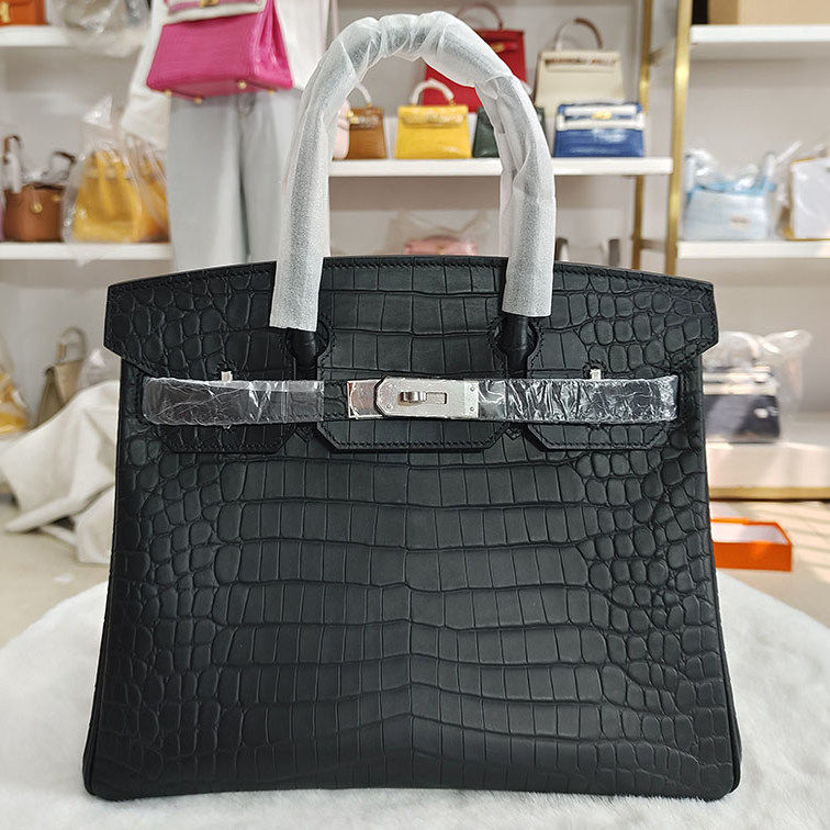 鳄鱼皮铂金包 牛皮鳄鱼纹高端光面方块真皮手提女包凯莉包25 30CM