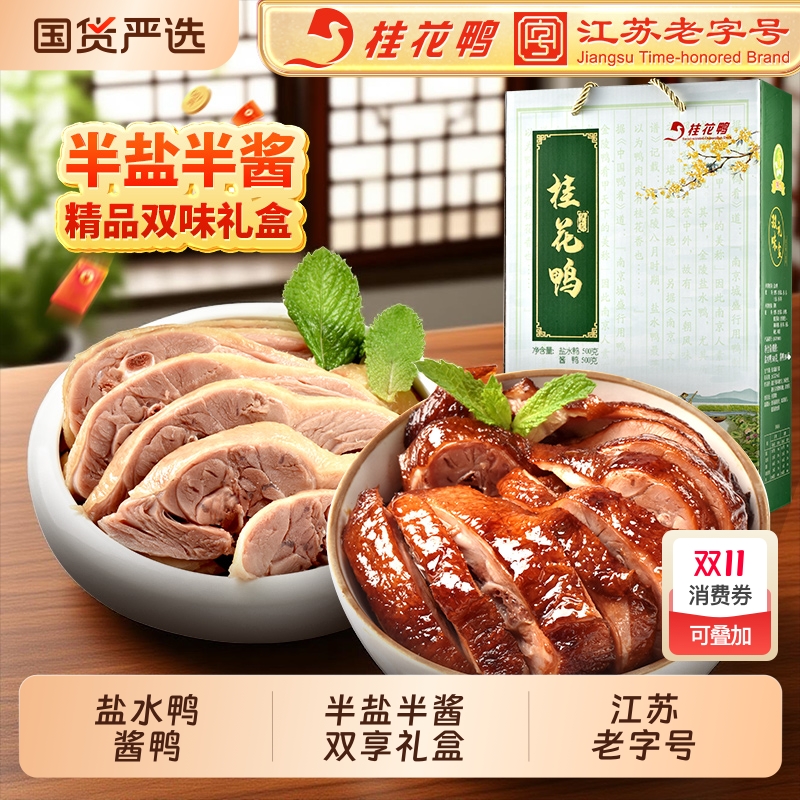 桂花鸭双味礼盒1kg正宗南京特产盐水鸭酱鸭江苏老字号熟食卤味