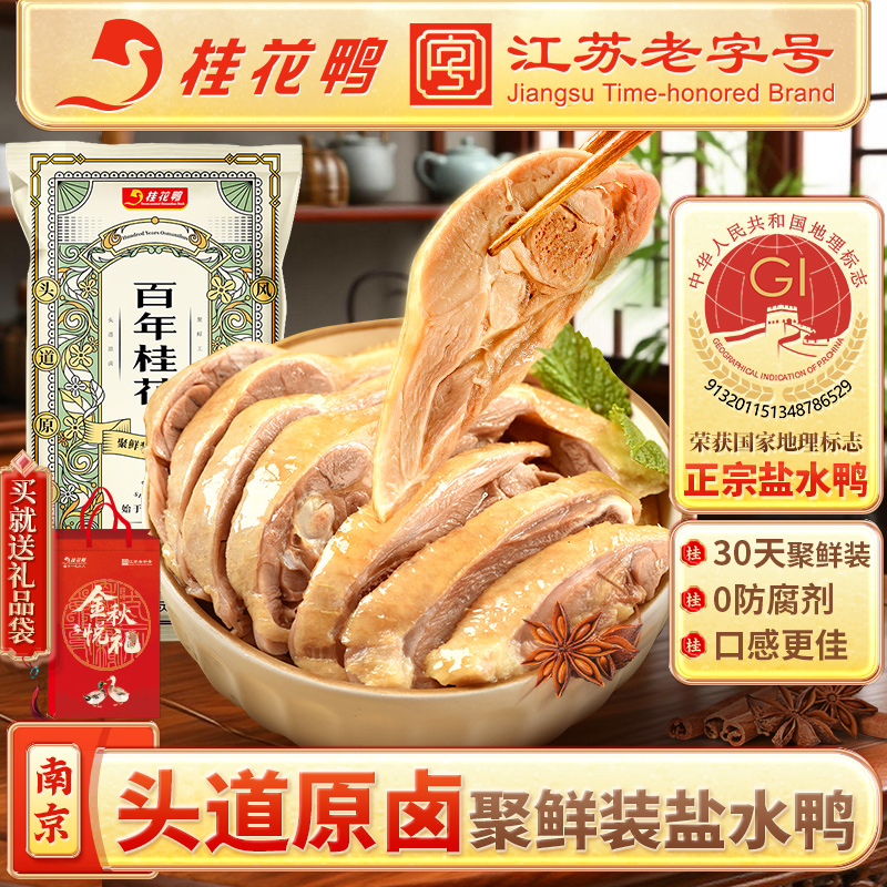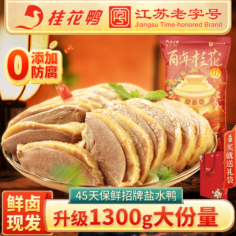 桂花鸭1300g百年桂花聚鲜盐水鸭正宗南京特产江苏老字号10天短保