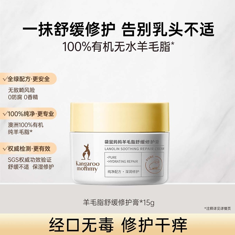 袋鼠妈妈孕妇羊脂膏孕期哺乳期产妇羊毛脂霜保湿孕妇用品修护舒缓