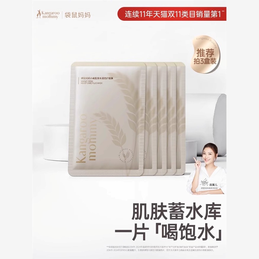 袋鼠妈妈小麦面膜补水女准孕期可用保湿滋润面部精华孕产妇护肤品