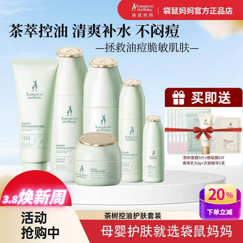 袋鼠妈妈孕妇控油祛痘套装茶树清爽补水保湿孕产妇期油皮肌护肤品