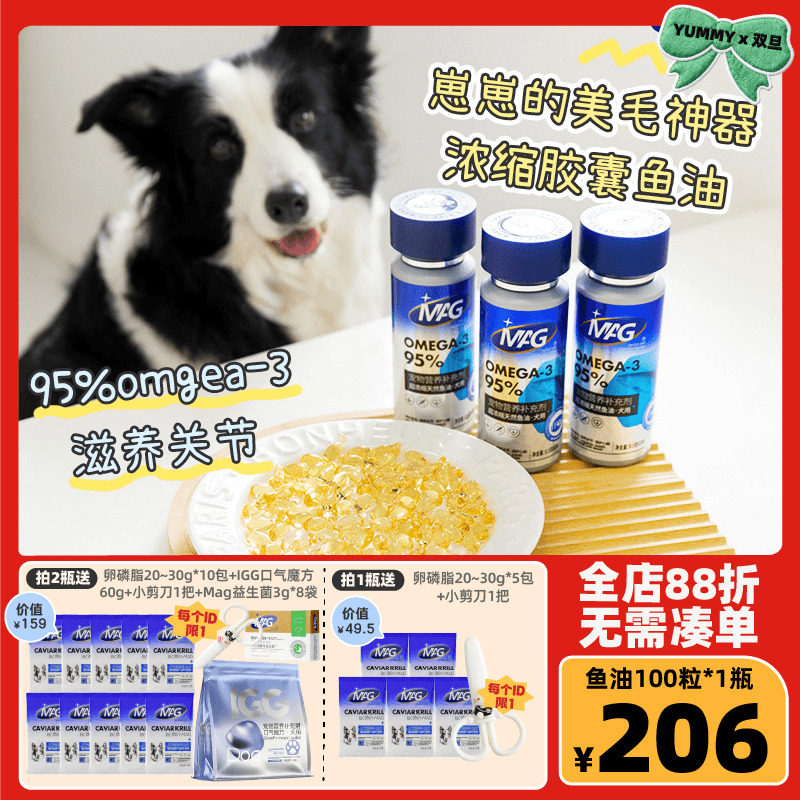 MAG鱼油 狗狗猫咪深海鱼油胶囊omega3超浓缩卵磷脂美毛护肤掉毛