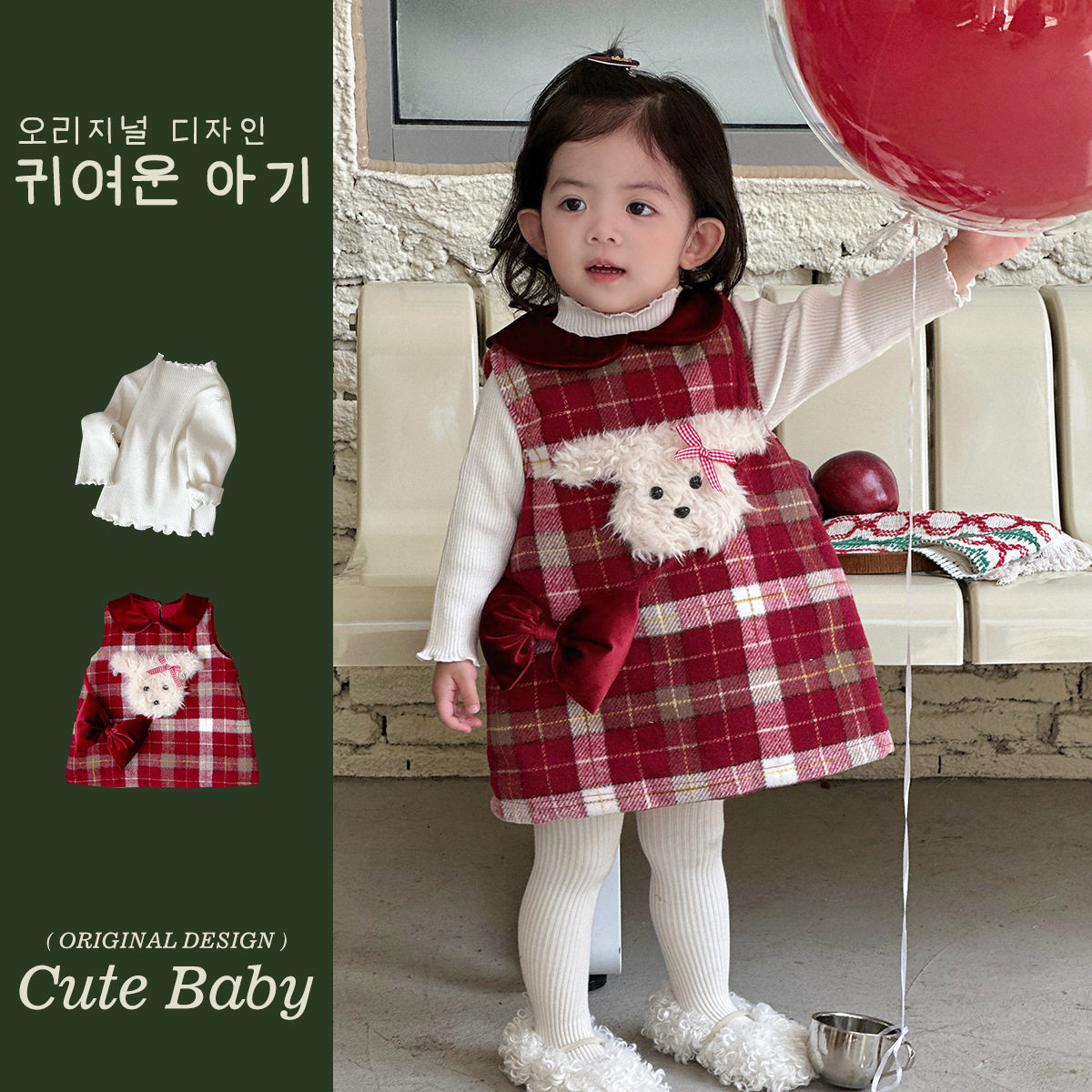 爆品幼禾韩国婴儿服装女宝宝秋冬季超萌格子夹棉套装打底衫儿童两