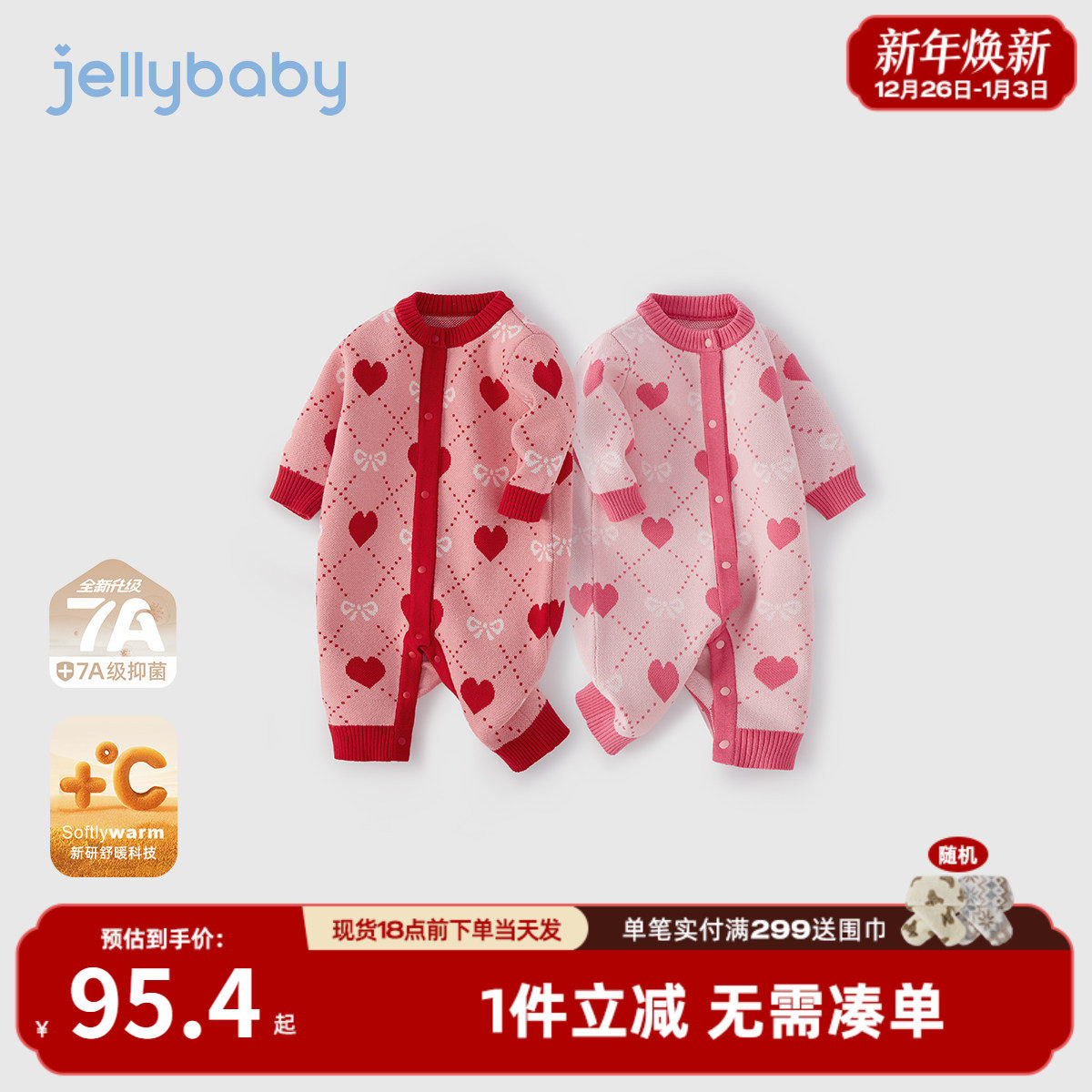 [抗菌远红外]纯棉婴儿毛衣连体衣秋冬哈衣红色满月女宝宝针织衣服