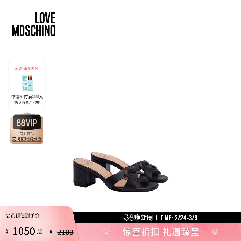 1h可退 香港直邮Love Moschino 爱莫斯奇诺 女士 精饰皮质凉拖 JA