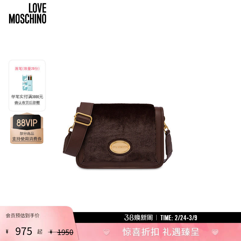 【礼物】Love Moschino女士人造皮草斜挎包LOGO标牌单肩包