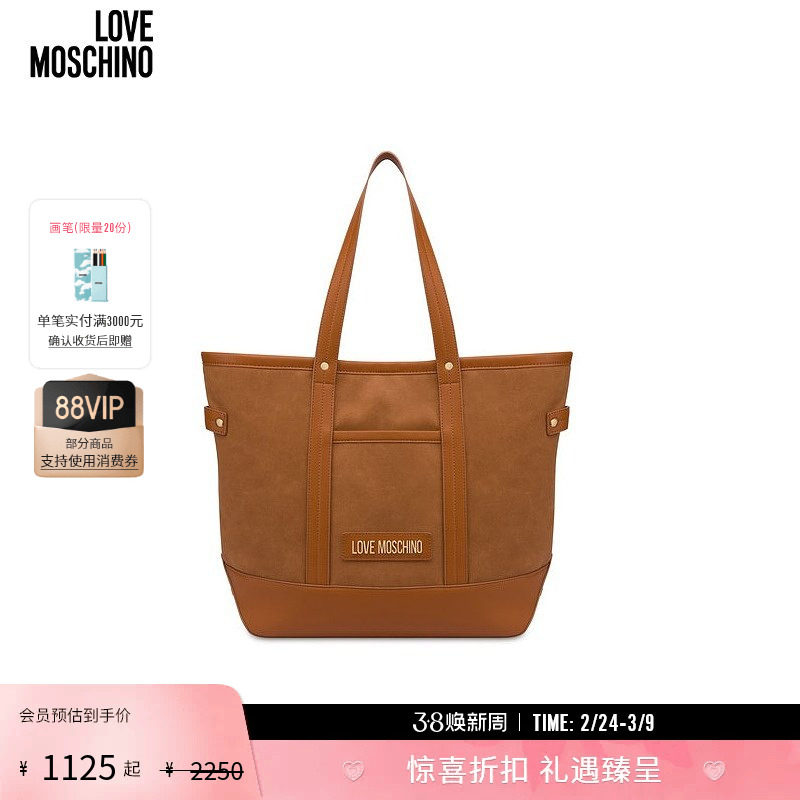 【礼物】Love Moschino 女士PU皮大号托特包徽标手提包