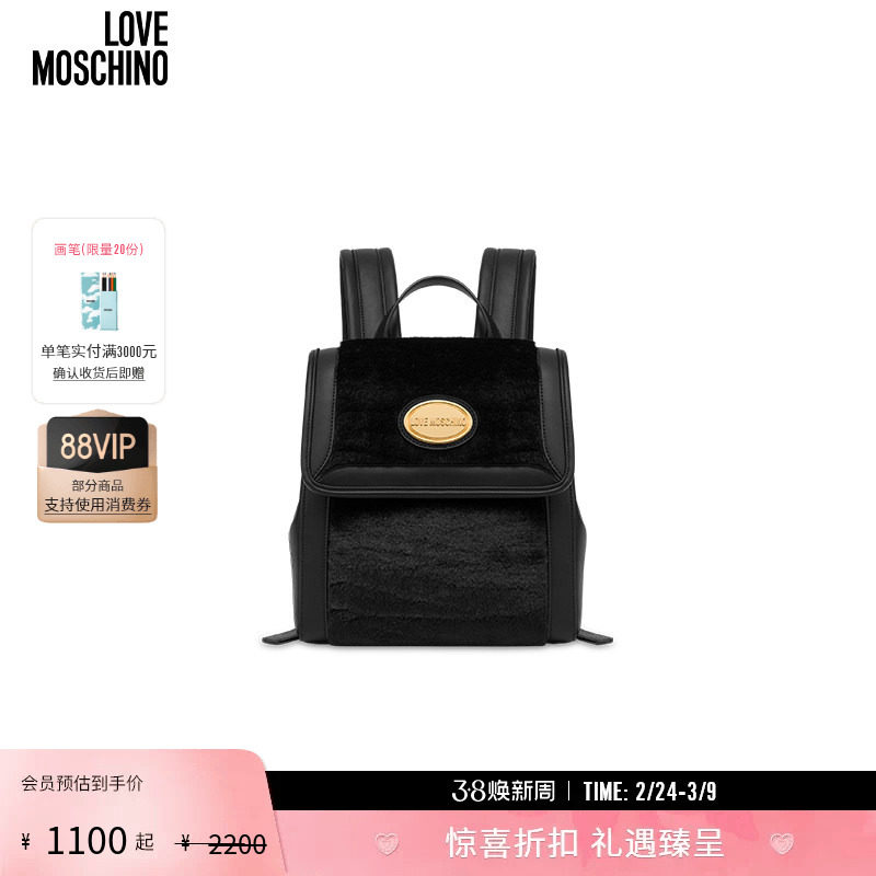 【礼物】Love Moschino女士人造皮草手提包logo标牌单肩包