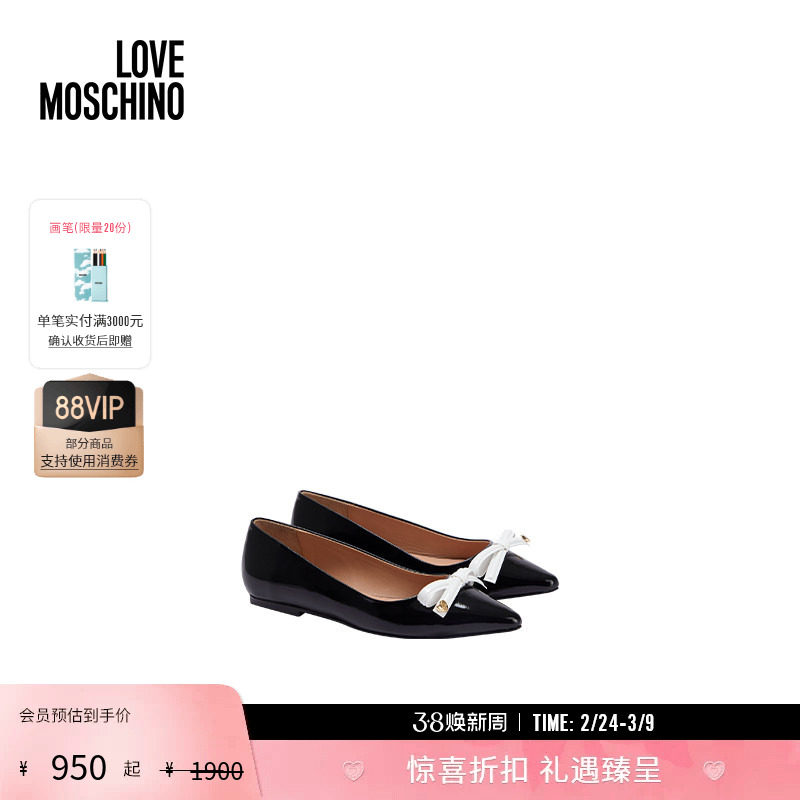 【礼物】Love Moschino 女士蝴蝶结装饰漆皮平底鞋
