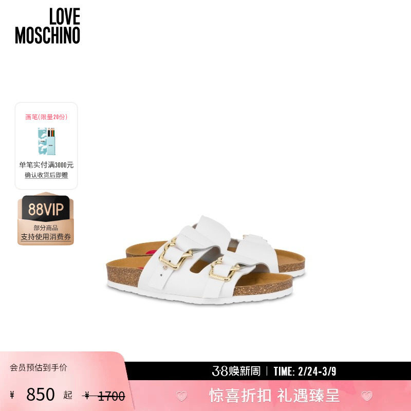 【礼物】Love Moschino 25早春 女士双心扣小牛凉鞋