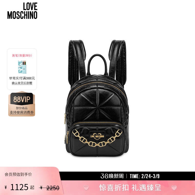 【礼物】Love Moschino 女士PU皮链条装饰双肩包