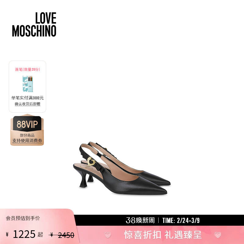 【礼物】Love Moschino 25春夏黑色金属爱心装饰高跟鞋