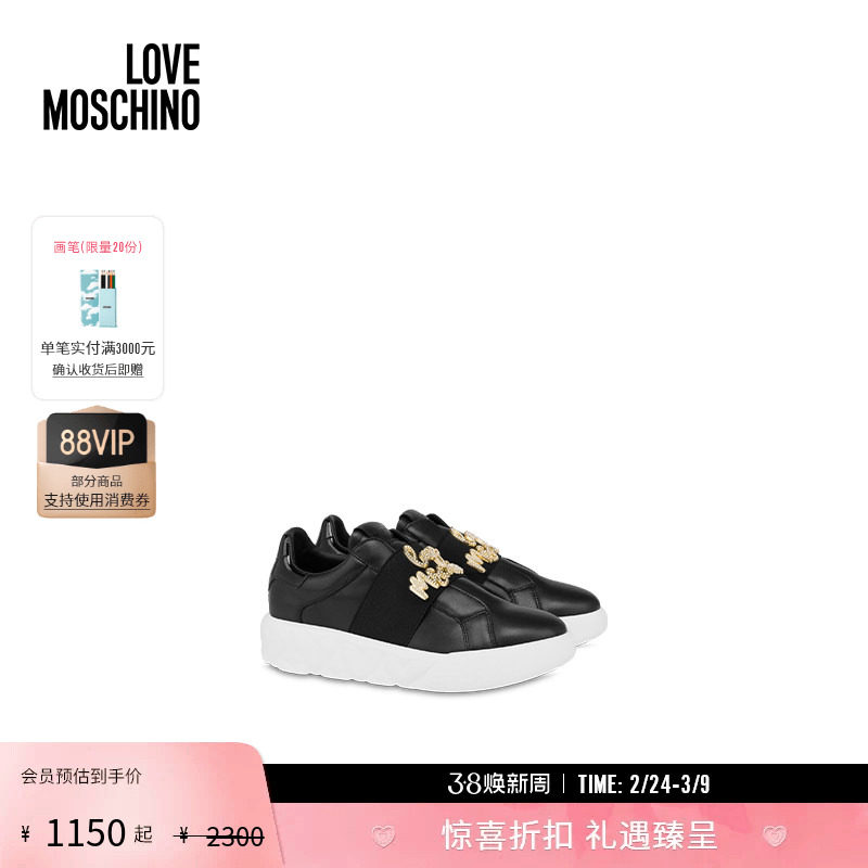 【礼物】Love Moschino女士水钻徽标装饰厚底休闲鞋