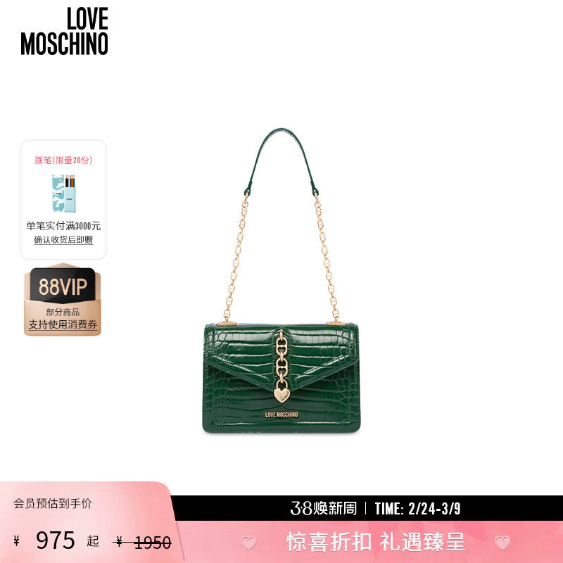 【礼物】Love Moschino 金属字母徽标链装饰手提斜挎包